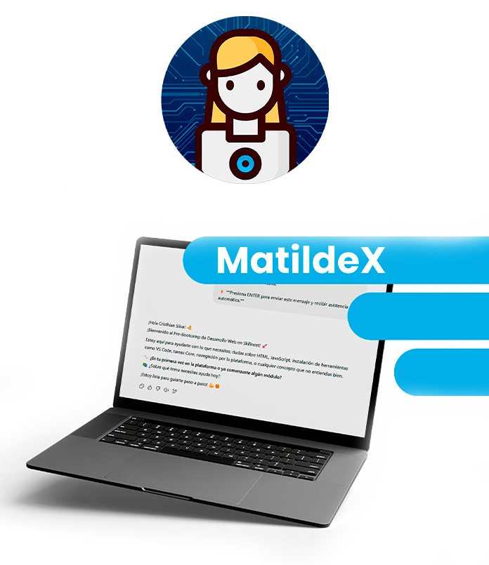 Presentamos MatildeX, nuestra revolución en educación tecnológica: un tutor de inteligencia artificial disponible las 24 horas del día, los 7 días de la semana, diseñado específicamente para potenciar tu experiencia de aprendizaje.